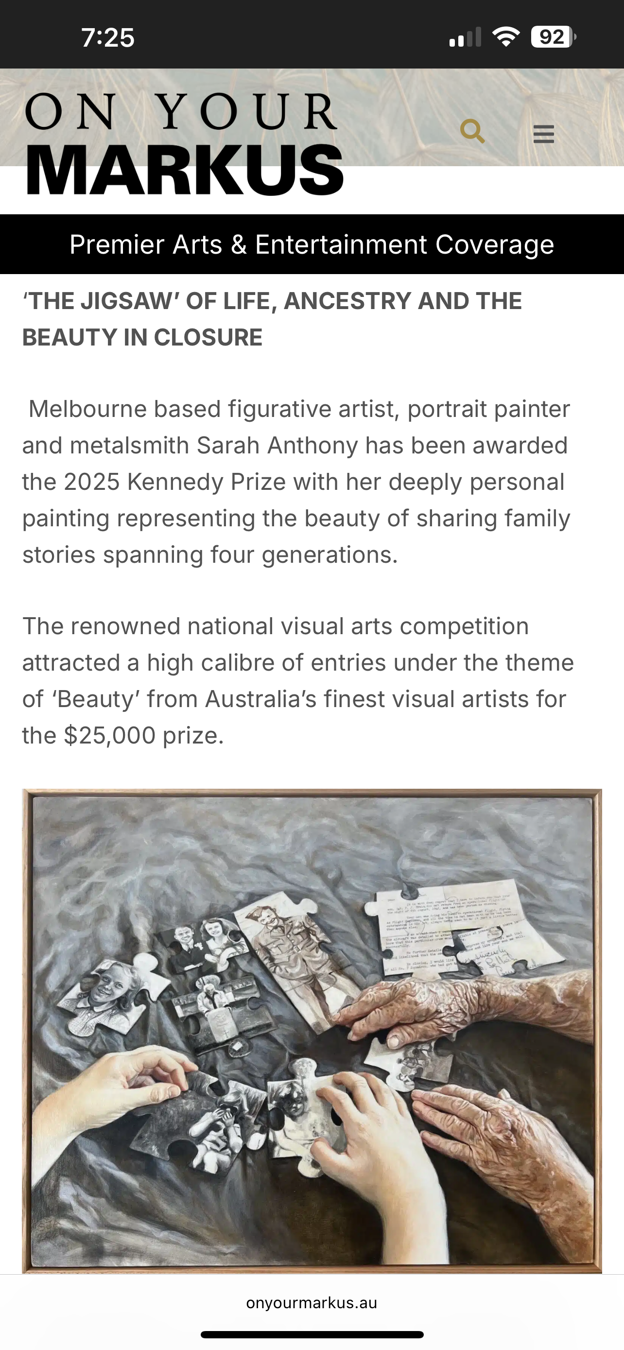 Happy, grateful, honoured, humbled to win the Kennedy Art Prize 2025 with my painting ‘The Jigsaw’.